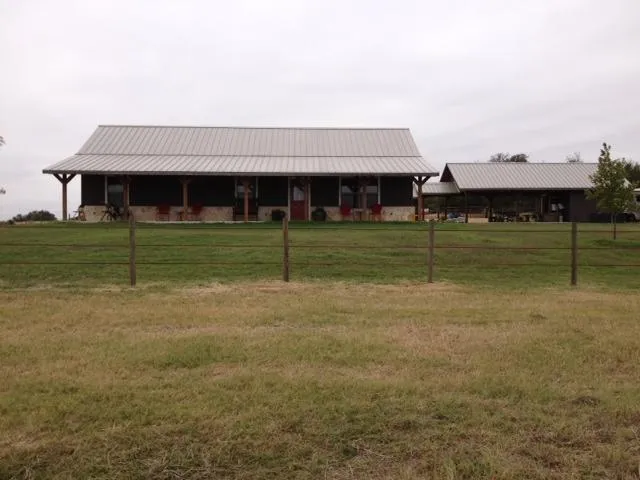 3 bedroom 2.5 bath home with a guest room located across the breezeway with it's own bath. The front porch view is indescribable with a panoramic view of the hills of Washington County many miles away. The kitchen is an open floor plan with barn tin ceiling , stained concrete floor and cedar wood from native trees taken from the farm. The master bath features a large walk-in shower and cedar counter top. The entire house is insulated with spray foam insulation. Average electric cost is $170 per month. Across the creek is a shop for your wood working or metal working niches,2 barns and a shed for all your storage needs, there is a pipe corral for the horses or cows that is connected to one of the barns. Less then 8 miles from Round Top.