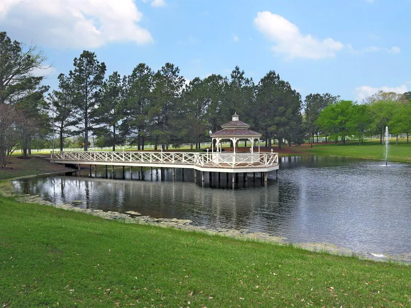 The main house is nestled deep into the property with the estate entrance lined with majestic loblolly pines, meadows of springtime wildflowers and a beautiful pond with fountain, lighted pier and picturesque gazebo.