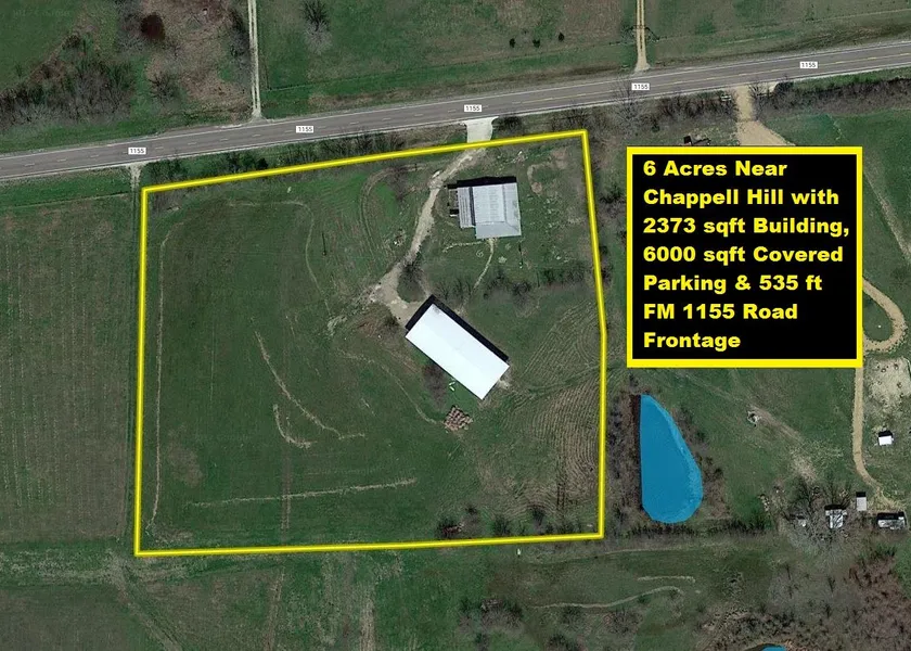 Great Opportunity to Own Beautiful Bar & Grill on 7.6 Acres Near Chappell Hill in Washington County with Room to Expand or Build Home. 2373 sqft Building, 6000 sqft Covered Gravel Parking & 535 ft FM 1155 Road Frontage. Building has Metal Roof, Large Room w/Beautiful Granite Wetbar, Bar Seating, Small Stage/Dance Floor & Breathtaking Mural; Kitchen w/Commercial Sink & Appliance Connections; Women's & Men's Restrooms; 1500 sqft Attached Wraparound Covered Patio. Minutes to US-290 & TX-6 & Located 75 Miles from Houston & Austin. Selling Only 7.6 Acres w/Improvements is Available for Sale. 1.5 Acres Along East Border w/Pond was Already Sold to Adjacent Neighbor. 40 Miles to TAMU/College Station. 75 Miles to Houston & Austin! Great for Biker Bar & Grill, BBQ Restaurant, Food Truck Lot, RV Park, Wedding Venue, Event Center, Cowboy Church or Community Center. Appointment Required to See Inside Building. Selling As-Is! Roof is in Need of Repair!