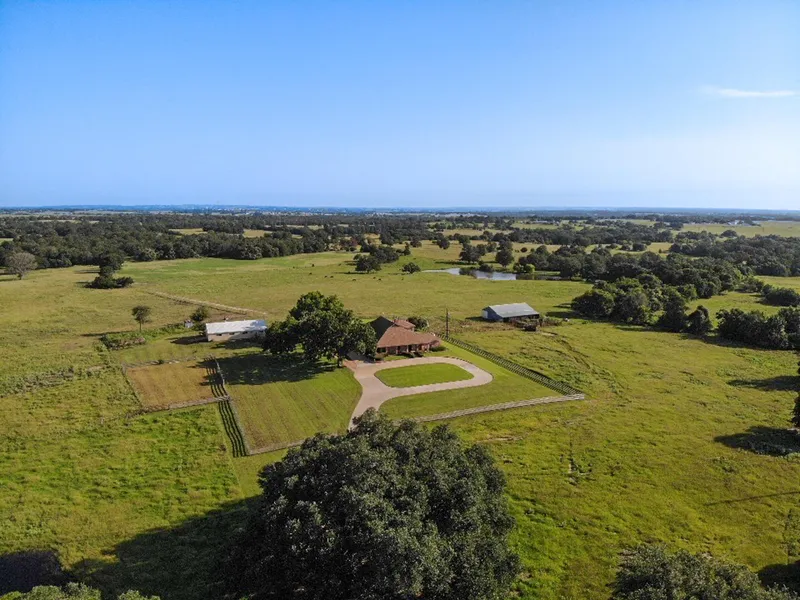Whether you want to escape to a country retreat or start or expand your cattle operation, this peaceful and secluded , 91.28 AC property with gorgeous sunset views has the infrastructure in place to make your dreams come true! Cross-fencing, rolling pastures and woods, barn, storage building for hay, tack room, existing pens, and 2 AC, fenced yard with sprinkler system are just a few of the exterior highlights. The stately, 4202 sq ft home is full of classic features, including rich wood accents in foyer and great room, built-in ironing board in the oversized utility room, and built-in desk in the kitchen. Other features include soaring ceilings, dramatic fireplace, great natural light, large kitchen island, 2 options for the owner's suite, and plenty of windows, which allow you to enjoy majestic views of the 4 ponds and centuries-old live oak trees that can be found on the property. Brenham is less than 20 minutes away and offers shopping, from HEB to quaint, local shops and food options, from fast food and Starbucks to one-of-a-kind restaurants and Bluebell.