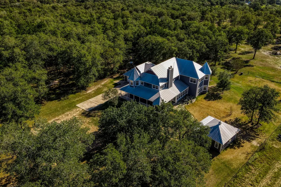 This desirable 11 acres with custom home has so much privacy & recreational options. This property has everything you would want in a home or weekend retreat with a fishing pond, trails & lots of trees. This is the perfect place for raising your own organic veggies, horses or 4H projects. Along with having your lg. executive home, you also have a quaint cottage with a full bath & kitchenette accessed by a cobblestone walkway. Built in 2000 the main home was seamlessly added onto in 2010 by one of our local, most respected builders. It features 3 gathering/entertaining areas, a study, 3 LRG. Bedrooms with ensuite baths & rooms to turn into more bedrooms. Upstairs is a walk out balcony with gorgeous sunset views. Also 2 laundry rooms for your convenience...1 up & 1 down. Your oversized garage features a separate heat & cooled workshop to do all your projects. Easy access to Houston, Austin...