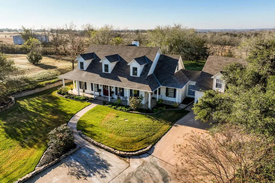 "Magnolia Farm" - This little slice of heaven in the rolling hills of Brenham has everything you could want! This breathtaking property has a tree-lined, asphalt driveway with ponds (one w/fishing pier) on either side of the drive, scattered mature trees, wet-weather creek, massive 300+/- year old oak trees providing a perfect canopy over the deck off the driveway, and so much more! Property is fenced and cross-fenced with an Ag exemption in place for cattle. The 4044sf (per WCAD) home abounds with luxury and charm & was painstakingly remodeled in 2018-2019. Elegance exudes in every room, from the moment you enter. A grand staircase frames the foyer across from the dining room. Refinished wood floors, and ship-lap walls bring country and luxury together!