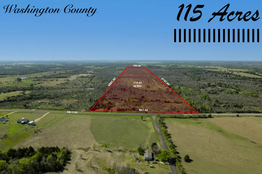 115 acres Nestled in the blue-bonnet enveloped hillsides of the charming countryside known as Chappell Hill. In Washington County, known throughout the world as the Birthplace of Texas, Historical Markers line the highways telling of a storied and proud past. This Gorgeous ACREAGE is conveniently located between Houston, Brenham and College Station. Tranquil and private, with High Elevations for breathtaking views out over the VAST and Beautiful Rolling Hills, for that perfect homesite overlooking your ranch! AG Exempt, with ELECTRICITY on site, the only thing missing is YOUR Ideas to turn this GORGEOUS property into the OASIS youve been looking for! PRIME acreage for Hunting, Recreation, Custom Built Home, Fishing, Farming and Ranching, Cattle Grazing and MORE! Enjoy the MORNING VIEW over a steaming cup of coffee while watching the wild deer, turkey, and hog wander through the pasture, along almost 1/2 mile of winding and picturesque creek bottoms. FM 1155 paved frontage road.