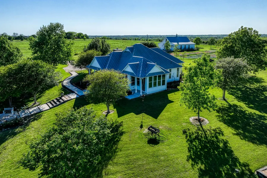 You'll fall in love with this 19 acre property! The White House on the Hill is an compound especially designed for a discerning and adventurous family. The 2/2 main home is exquisitely detailed with hand hewn beams, vintage wide plank wooden flooring and accented with stained glass windows & doors. An amazing 1/1 guest house overlooking the lake will surprise & delight your guests and the 4/2 timber-framed barn is perfect for entertaining larger groups. It includes a catering kitchen and you can spend evenings at the firepit watching amazing sunsets. The metal barn w/3 roll-up doors has been an artist haven, antique tool museum & used for RV storage. The icing on the cake is the 400-vine vineyard. The vines are heavy with grapes and in September you'll be calling your friends and family for the annual grape picking. Only 15 minutes from Round Top, it's a short drive from Houston and Aust...