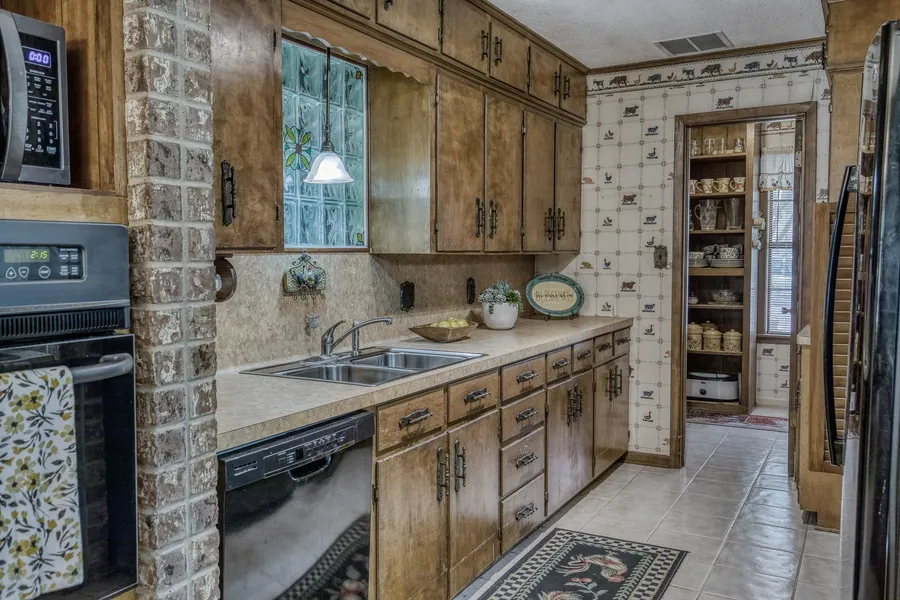 Beneath a canopy of mature oak trees in the Sandy Hill area of Washington County, this charming brick ranch-style home offers timeless appeal and space. A circle drive leads to the front entrance and inviting interior. Step into the foyer to a spacious living room with a classic wood-burning brick fireplace. This 3-bedroom/2.5 bath home is designed for easy living and entertaining, with open living areas and a sunroom filled with natural light. The kitchen features a designer-style brick arch over the cooktop, ample prep space, and walk-in pantry with generous shelving. Off the kitchen, a flexible room serves as dining area or home office. A generous game room/man cave adds more living space, while the oversized laundry room offers extra storage. Enjoy the back porch overlooking a private wooded view. A fenced area includes a gazebo, small pond, storage shed and space for pets or 4-H projects. Per recent appraisal sq footage is larger than CAD. Property is an Estate, sold “AS IS.”