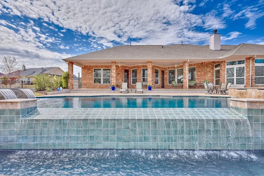 Infinity Pool with fresh water lake finish to reflect the heat, waterfalls and fountains and whirlpool spa