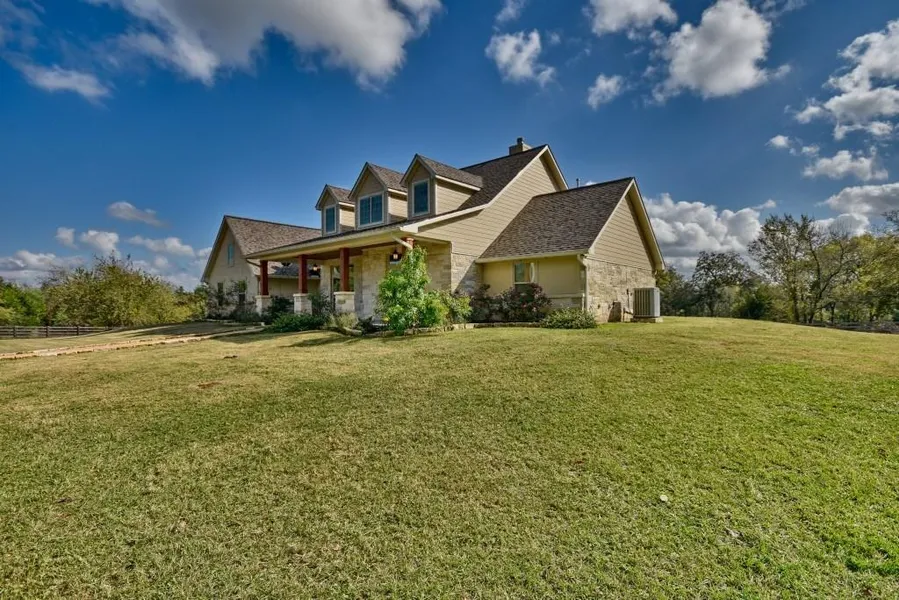 Beautiful ~30 acres with like new / Barely lived in CUSTOM ONE-STORY stone exterior home with porches front and back, open casual entertaining areas, high ceilings, LIBRARY, attached garage PLUS BARN/WORKSHOP WITH 2 BEDROOM / 2 BATHS APARTMENT all on approximately 30 beautiful acres with wooded riding trails, stocked duck pond, paved road frontage with automatic gate entrance and winding drive. CURRENTLY AG EXEMPT ON PROPERTY TAXES.