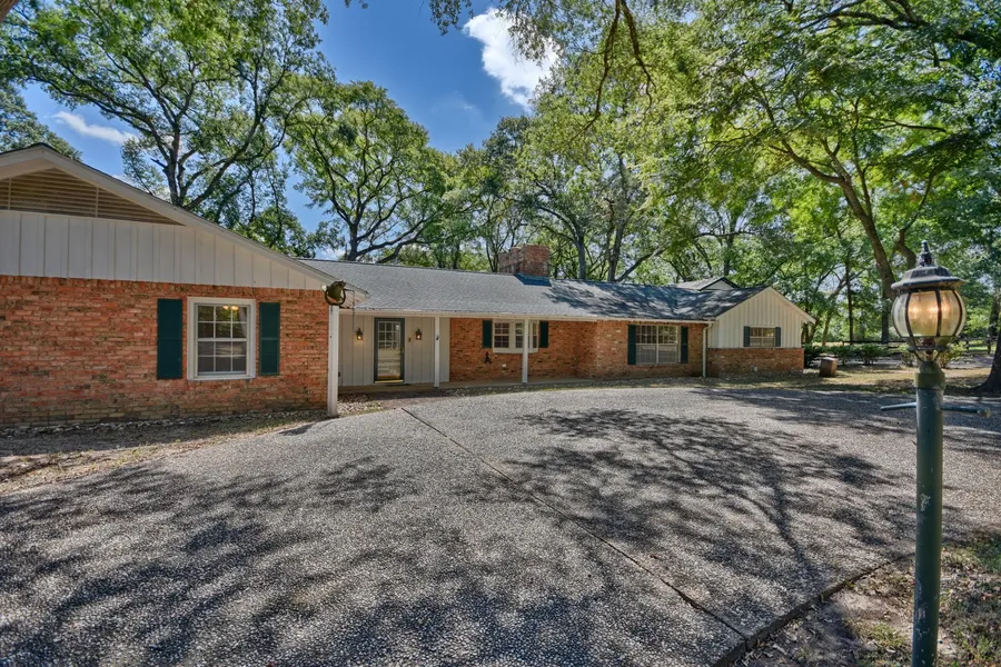 Just outside of Brenham near the golf course and on a paved road is this beautiful wooded 20.95 acres with winding drive up to the one-story rambling ranch style home, guest house and barn with quarters. Enjoy the walking trails, fishing in the pond off the pier or raising livestock in your private oasis.