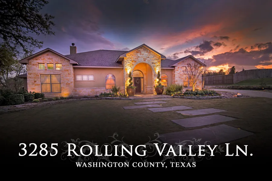 Beautiful custom home located in Rolling Ridge Estates. This one of a kind masterpiece features 3450 SF, 4 bedrooms, 3.5 baths and a fantastic floor plan. The spacious great room offers impressive floor to ceiling stone fireplace, cathedral ceilings and is open to the kitchen, which is perfect for entertaining. The kitchen is every chefs dream with island, breakfast nook and eat at bar. There are custom hardwood cabinets, deco tile backsplash and stainless appliances. The formal dining is just off the kitchen and offers a gorgeous Black Walnut Art Wall, dry bar, wine cooler and china cabinets with artisan concrete counters. Other features include a spacious master suite, three large bedrooms, entry rotunda, media/workout room and study. The back Entertaining Lanai offers flagstone floors, custom stone fireplace, sound system and lots of space for seating. Situated on 1.559 acres with large trees, lavish landscaping and convenient access to Brenham.