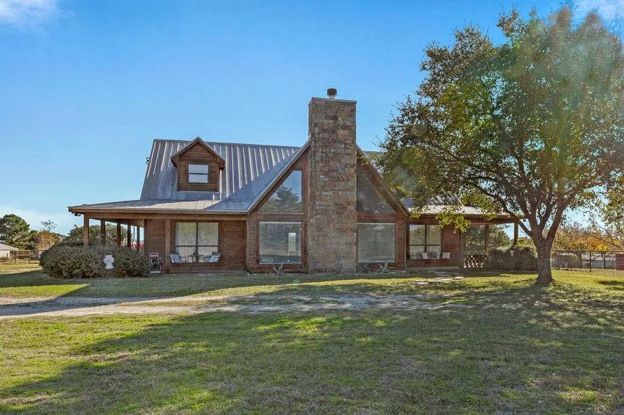 Just minutes from Brenham, this lovely home with wonderful wrap-around porch has a large open family room, dining room and kitchen with tile floors. Family room has vaulted ceiling, rock fireplace, recessed lights, floor plugs and large windows for an open airy feel. Kitchen features a large island with open shelves, cooktop and copper vent hood. It also has ample cabinets, a pull-out trash bin, a built-in oven, microwave, double sink, disposal and dishwasher. Off the kitchen is a large utility room with washer/dryer connections, clothes rack and storage closet. The main bedroom and bath are downstairs. Main bath has his and her vanity with simulated marble countertop, walk-in closets, large garden tub and separate shower. Downstairs also has a convenient office and 1/2 bath. The upstairs loft area features a sitting area overlooking the family room, two bedrooms with dormer windows, two...