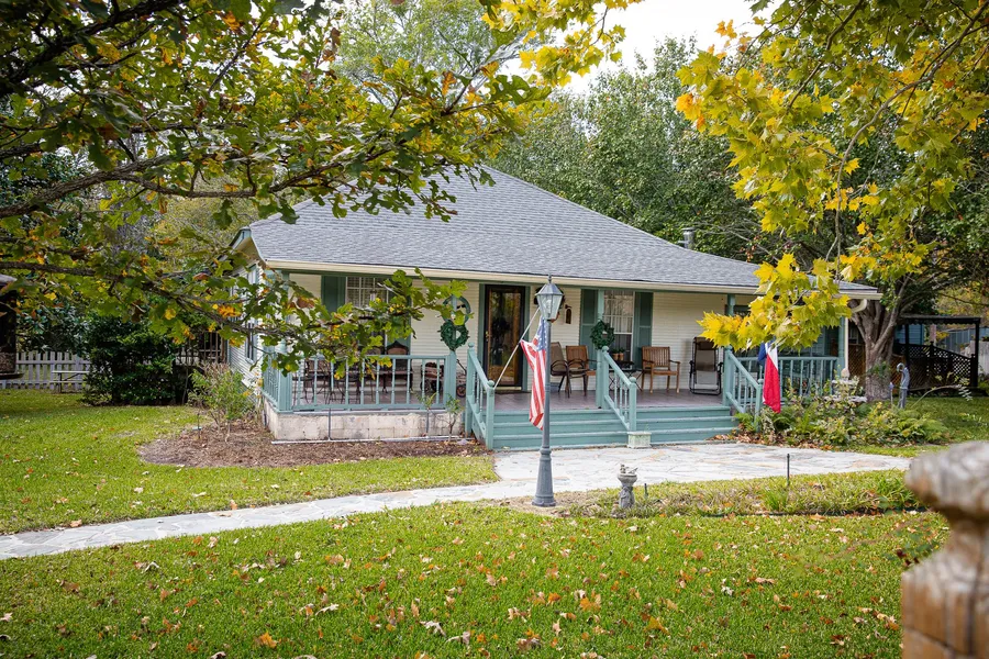 Quaint vintage home on 4.98 acres just outside of the city limits of Burton, Texas. Home believed to have been built in the 1940's was moved on to the site in the 70's and lovingly restored by the current owners. Main house is 1,308 SF per WCAD and has 2 bedrooms and 1 bathroom. Gorgeous long leaf pine floors throughout and high ceilings make the home feel much larger than it is. Kitchen has a spacious dining area, large pantry, island, gas cooktop and oven, dishwasher and microwave, sweet breakfast nook overlooking the side deck and yard. Bathroom has stand up shower and a clawfoot tub. Guest house is 252 SF per WCAD with nice sized bedroom and full bathroom with a clawfoot tub. Property has lovely rolling terrain, small pond, storage building, carport/shed and numerous tree species, flora and fauna. Convenient location in that just in a minute or two you are back in Burton to enjoy sev...