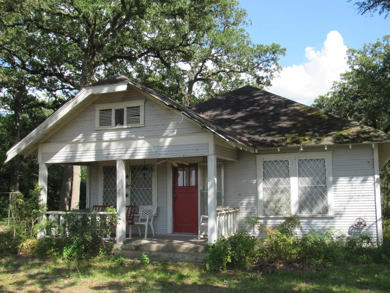 Charming farmhouse on 3.81 acres has large trees and is located within 4 miles of Brenham in Washington County. Home features living, dining (with double glass interior doors) and kitchen has plenty of cabinets, double ovens and serving bar open to dining. Original hardwood floors in several rooms including living & dining. Two bedrooms each with two closets, plus an extra 13x9 room could be used as a third bedroom or flex space. Hall bath with tub/shower combination with linen storage cabinet. Utility space on back porch plus a 1/2 bath. Two car attached garage with additional storage / workshop space. Water well. Older small barn located behind the home also on property. Beautiful large trees with several open areas and also heavily wooded areas towards the back and side of the property. Paved road frontage. Home & Property being sold as is.