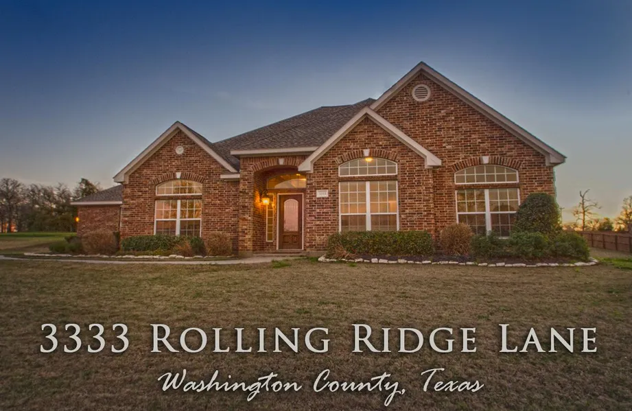 Beautiful home in Rolling Ridge Estates. The like-new home was built in 2013 including +/-2608 SF (per WCAD) and is situated on +/-1 acre and conveniently located only minutes to downtown Brenham with easy access to Hwy 290. As you walk thru the inviting foyer you will immediately be greeted with all the stunning features this home has to offer. Open floor plan, 4 bedrooms with optional study, spacious living with custom stone corner fireplace and large formal dining. Wonderful island kitchen with granite countertops, Kent Moore cabinets, butlers pantry and is open to the living and breakfast area. Light and bright master suite, vaulted ceiling, luxurious whirlpool tub with separate shower, double sinks and nice sized walk-in closet. Oversized two-car side entry garage, covered and uncovered patios great for entertaining. Shady back yard with mature oak trees, sprinkler system and county maintained roads.