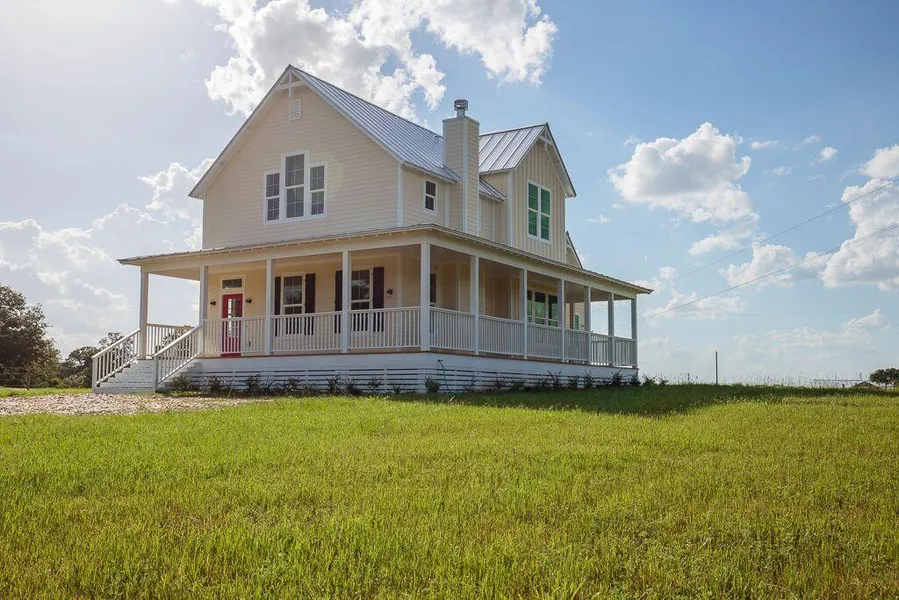 Arm River Builders presents this traditional Texas farmhouse with wrap-around porch on an acre. 2150 square feet 3/2/1. Open floor plan, spacious kitchen, living & dining area. Wood burning fireplace, standing seam metal roof, granite counter tops, island kitchen, high ceilings, crown moulding, frameless shower door. Master suite with garden tub, double sink vanity, and large walk-in closet.