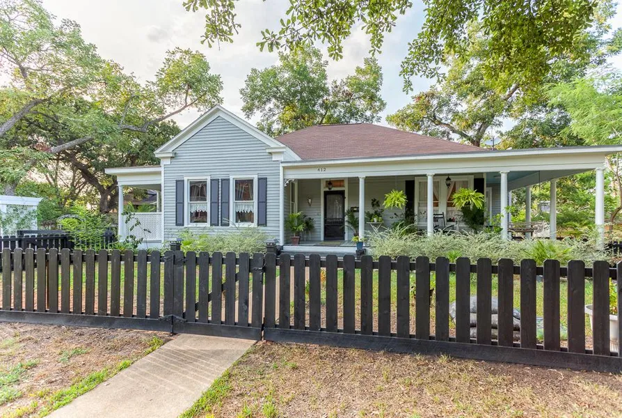Historic Victorian with great bones and style, restored and updated. Surrounded by some of Brenham's grand old homes one block from downtown Brenham on double lot with two driveway entrances. Great floor plan all one level with all rooms opening off wide center "dog trot" (utilized as dining room and entry), master suite with door to wrap around porch and master bath with separate walk in shower and tub, double vanity and large walk in closet/dressing area, 2nd bedroom with lovely private bath plus 3rd bedroom and bath with claw foot tub for guest. Large country kitchen with breakfast area and morning porch in back. Additional features include 10' & 14' ceilings with wood beams, crown moldings and beautiful long leaf pine floors.