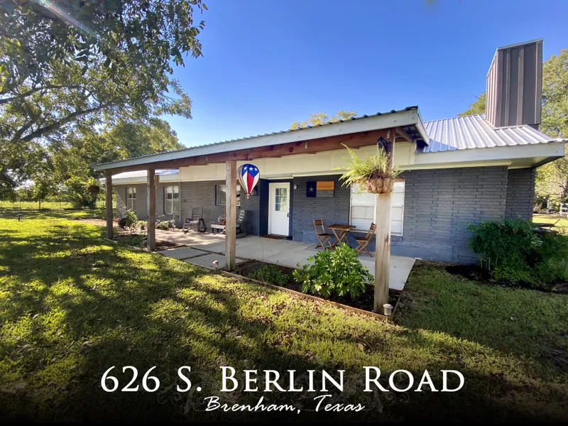 Just a short drive down scenic S Berlin Rd in Brenham takes you to this recently remodeled ranch style home sitting on 1.6 acres and surrounded by beautiful country properties. Built in 1960, the cozy rustic home has such a vintage charm to it highlighted by great looking wood beams accenting the ceiling throughout. Other features include: Large living and dining room, spacious kitchen with breakfast nook, nice sized bedrooms, charming study with barn doors and fireplace, and air-conditioned garage area flex space with full bath perfect for workshop, hobby or workout room.