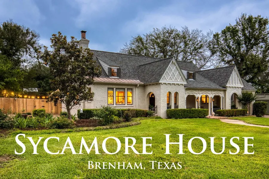The exterior of the home features front-facing gables with asymmetrical timber and brick designs, typical of the Tudor Revival style of architecture. The large front porch is a perfect year-round sitting area. Enjoy being less than a half mile from downtown Brenham! In just a couple minutes you can walk to shopping, dining, parades and downtown Brenham events.