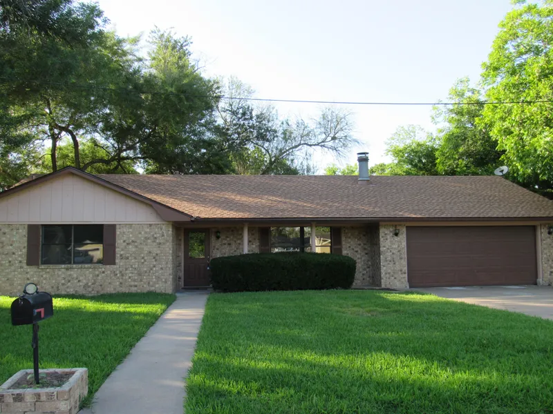 Brick home has a nice curb appeal, is vacant & move-in ready! Home features a nice kitchen with breakfast bar open to dining; living room with brick fireplace; two bedrooms & two full baths. Kitchen has stained wood cabinetry, Formica counter tops, electric range, stainless sink & the refrigerator will convey. Primary bedroom has double closets and private bathroom with shower. Hall bathroom has tub with shower. Extra bedroom has two open closets and window overlooking backyard. Each bedroom plus the living room has lighted ceiling fans. Home has many recent updates including: Roof shingles were replaced around March; Windows recently replaced; Fresh interior paint; Flooring replaced. Foundation repair was done around April of this year. Utility room is located in the home and has a sink for convenience. Storage building in back yard may be converted to workshop. Two car garage has opener, paneled walls and an extra space for lawn equipment or other storage. There is also a double wide driveway for additional parking. Front yard has thick St. Augustine grass and there are mature trees in privacy fenced backyard.