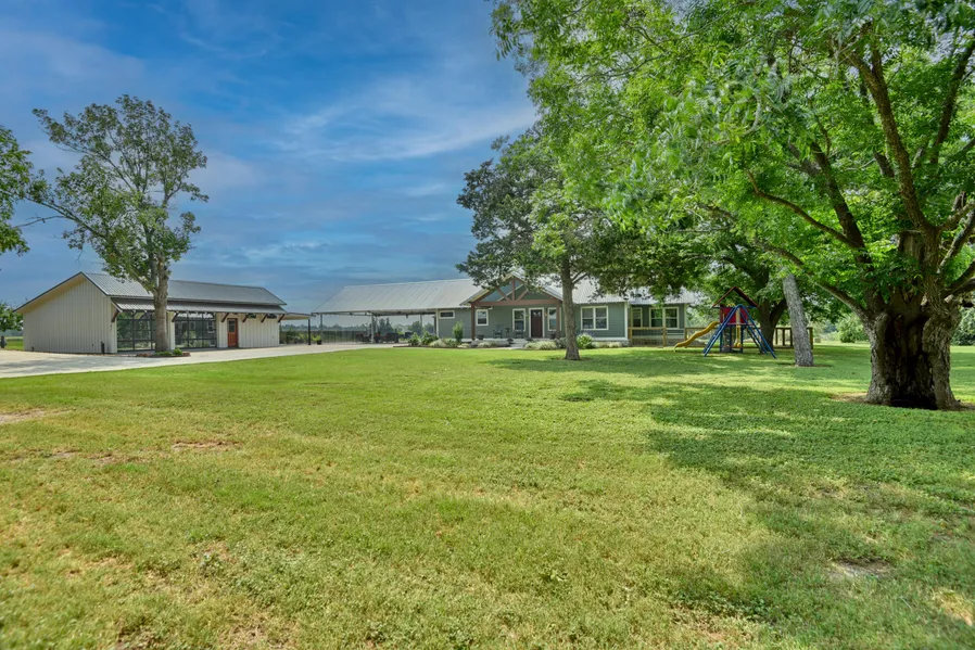 THE ONE YOU'VE BEEN WAITING FOR! Surround yourself in the best of both worlds; historic charm and character of the original 1925 vintage farmhouse's shiplap walls and wood floors, renovated 2016 for energy efficiency, and modern flair of the fully equipped guesthouse (2021). Truly a turnkey property in which the old and new blend effortlessly and every amenity and detail purposely thought of and carried out. Extra-large carport (steel frame), in-ground pool, prime location with hilltop views, close to Round Top surrounded by picturesque properties. Guesthouse offers additional 1327sq' of living space, 2BR/2BA, open living/kitchen equipped w/gas stove, oversized island, commercial fridge/freezers, glass roll-up doors perfect for entertaining and gathering. Property fully fenced, auto-entry gate, 40'x80' fully insulated shop with concrete floor, pond, original community cotton gin and seed house still located in its hidden hideaway as it once was. This is truly a special jewel family and friends will treasure!