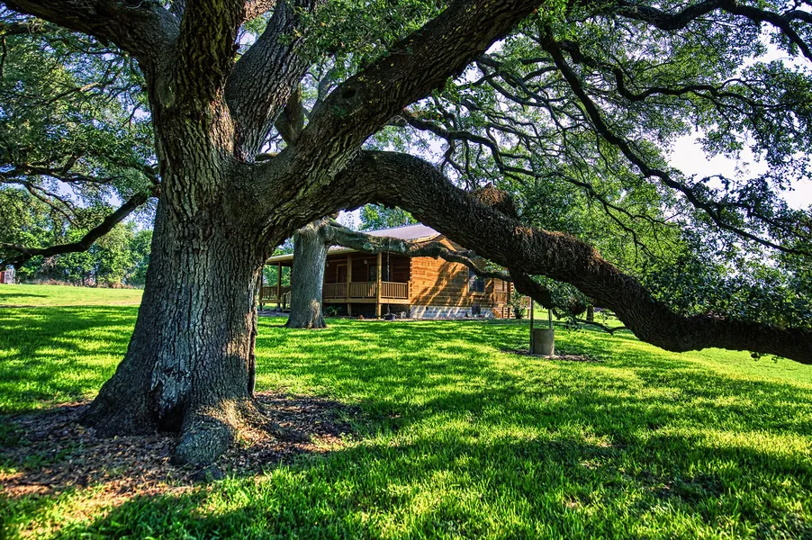 Welcome to your dream log home on 5.64 acres, surrounded by mature oak trees, creating a serene and private retreat. Enjoy the rustic elegance of a covered front porch and a welcoming side porch, perfect for relaxing and taking in the natural beauty of the property. Step inside to discover an open concept living space featuring a cozy living room, with easy access to the dining area and kitchen. The home offers versatile living options with an office with full bath that can easily serve as an additional bedroom. There are two bedrooms and two additional baths to accommodate family and guests comfortably. The interior is highlighted by warm wood floors that enhance the log cabin feel. The cabin has a metal roof for long lasting durability while adding to the rustic charm of the home. Dont miss the chance to own this unique and inviting home, where rustic appeal meets modern convenience. 2.4 miles from Downtown Brenham, 43 miles from College Station, and 68 miles from Houston.