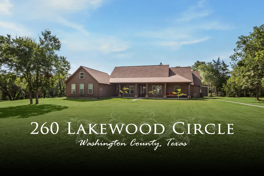Attractive 2019 Mill Creek Custom home, showcasing one of their most sought-after floorplans. Step inside to discover the grandeur of cathedral ceilings, complemented by an inviting stone fireplace and beautiful hardwood floors. The abundance of windows allows natural light to flood the space, creating a warm and welcoming atmosphere. This wonderful residence offers 3 bedrooms, 2 full and 2 half bathrooms, and 2 flexible spaces, providing ample room for all your needs. The 3-car garage ensures plenty of space for vehicles and storage. Outside, indulge in the luxury of a sparkling swimming pool, complete with a pumphouse that also serves as a storage area or ultimate man cave, measuring approximately 1626. Additionally, there is RV/Boat storage or workshop, boasting dimensions of approximately 4036. Nestled on a sprawling 2.45-acre lot adorned with picturesque trees, this property offers a tranquil escape from the hustle and bustle of city life. The seller has spared no expense, installing a state-of-the-art 4-process water filtration system, including a carbon and UV filter that effectively eliminates bacteria. Welcome to Lakewood, a serene and intimate neighborhood consisting of just 12 homes, each with larger lots. Conveniently located off Hwy 36, this community provides quick and easy access to Brenham, Houston, Lake Somerville, and College Station. Experience the perfect blend of peaceful living and accessibility in this stunning Mill Creek Custom home.