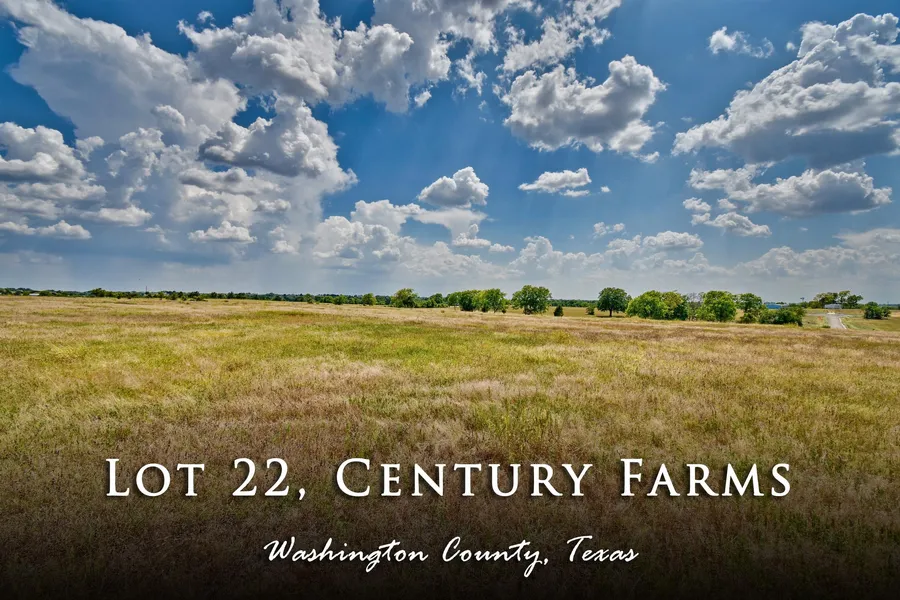 Prime lot in Century Farms, a new community of spectacular hills and gently rolling meadows just on the outskirts of Brenham. *Nicely elevated 1.5 acres located on cul-de-sac street *High speed internet coming soon *Easy access to Hwy 290 and 36. With it's ideal location, shopping areas such as Starbucks, the Baker/Katz development, Walmart, HEB, Home Depot and Lowes are less than 5-minutes, and nearby cities of Houston, Austin and College Station are a short drive away. Please join us at Century Farms in beautiful Washington County. Build your dream home and make memories in a community where families have room to roam and share a neighboring spirit.