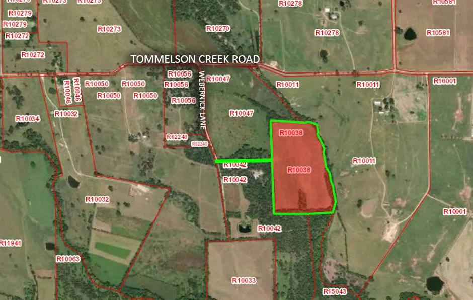 Research Parcel InformationFrom Brenham, take Hwy 36 North. Turn right on Tommelson Creek Road and right on Webernick Lane. The property will be on the left hand side. No sign on property.