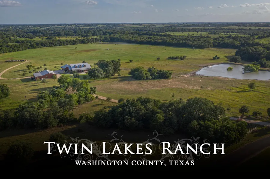Approx. 89.0535 acres located in the heart of the rolling hills of Washington County with close proximity to historic Independence, Texas. The property features a beautiful custom home, multi-use barn, high rolling hills, panoramic views, wood-lined perimeter offering seclusion and wooded area with nature trails. The entrance of the property is made from the historic Tommelson Creek Bridge and has an electric gate with remote capabilities. Follow the driveway up to the home, situated on the crest of the hilltop overlooking the ranch, featuring 4323 SF, 3 bedrooms, 3 baths, large living area, spacious kitchen with breakfast room, formal dining room, office and 3 car attached garage. The home is loaded with so many upgraded features including: stained hardie board exterior for low maintenance, 24 gauge standing seam metal roof with concealed fasteners, sound insulation in all interior/exterior walls, double insulated windows, underground power and the gutters are piped to one of the lakes. There are large front and back porches to take in the gorgeous sunrises/sunsets and an underground storm cellar for added protection against storms and winds. The barn exterior matches the home and offers large equipment/storage area with 4 roll-up doors, kitchen, restroom and lean-to in the back. There are 2 lakes and a small pond one is 2+ acres stocked with 10+ lb. Bass, Coppernose Bluegill, 15+ lb. Catfish, Striper, Crappie and a concrete pier; the other is 3+ acres with wood pier, peninsula & shade trees, is piped to irrigation well and ready to be stocked. The Hardeman Branch of Rocky Creek crosses the property creating a thriving habitat for all types of wildlife. The Twin Lakes Ranch has paved road frontage and is conveniently located approx. 8 miles from Brenham with close proximity to Bryan/College Station.