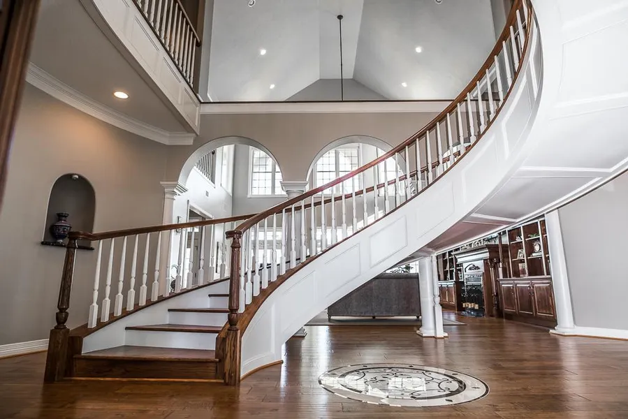 Just a few of the many features include the beautiful archways, spiraling custom stairwell, crystal chandelier, marble tile and hard wood flooring, large open living area with high-rise ceilings and huge windows to maximize natural lighting, electronic shades, surround sound system, and wonderful view of the pool and distant meadows!