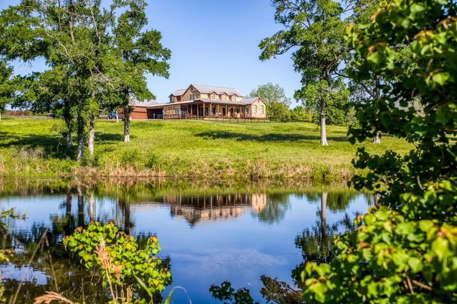 This private secluded property is located near Chappell Hill in the prestigious Gates Ranch Community. Gates Ranch is located within 10 minutes from the historic site of Washington on the Brazos "Where Texas Became Texas". If you are looking for a luxurious home that combines style, space, privacy and sustainability, then look no further than this stunning property. The property layout features an automatic gate at entrance to the property, then follow a winding road that will lead you through the trees and between two ponds and then up the hill to the home. This property is wildlife exempt to keep property taxes low.