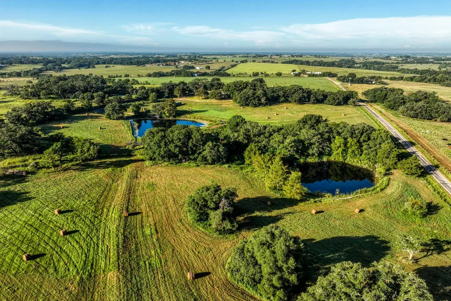 An impressive gated entrance takes you to a hilltop ranch home amidst dozens of Live Oak trees on a conveniently located 20-acre "ranch". The 4/4.5 home, updated in 2016, features a kitchen w/a 48" gas range and additional matching Kitchen Aid appliances. The kitchen and breakfast room have a dreamy view of the Live Oaks and miles of the countryside though an extra large picture window. A huge great room is kept warm in the winter with a wood burning/gas log fireplace. The primary bedroom also includes a fireplace and for those working at home a separate study w/built-ins. The ensuite bath includes a slipper tub & separate shower, 2 WC's and 2 walk-in closets. The additional 3 bedrooms all have ensuite baths. For more privacy, there is a 1-room guest house. The property has an RV covered storage area, 2 ponds and a 4-stall lean-to shed for your horses. Houston is an easy 80 mi drive and ...