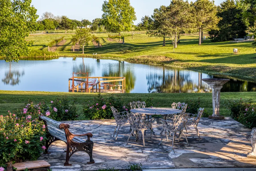 Exquisite country setting showcasing a 4/2 French Country Barn, a designer finished 2/2 home that is an artistic vision from the hand-hewn beams and vintage wide-plank wooden flooring to the vintage antique doors. A charming 1/1 chapel guesthouse reminiscent of a church from the 1800s which provides a romantic stay and a memorable backdrop for any bride. In addition there is a 3000 sq ft barn with central air/heat with 2 story glass roll up doors overlooking a pond and rolling hill country side, with the option for using it as an event center. All of the structures are situated atop of the highest point in Washington County and overlooking a stocked pond, rolling hill country side and a 400 grape vineyard which has already produced a tasty Blanc du Bois wine. Property is ideal for a stunning heritage estate or a proven income producing property for the past 10 years. ROUND TOP, known fo...