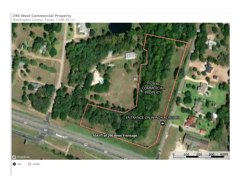 Prime Commercial location with over 7 acres at the corner of 290 West and Windy Acres Rd., This High Traffic, High Visibility location offers 554' ft. of Hwy 290 frontage with convenient entrance on Windy Acres Rd, across from Leftovers Antiques. Property is fenced with county water & electric at road. Perfect location for retail, medical, veterinarian or office complex. Traffic count in excess of 20,000 daily. Minutes from Brenham city center, less than an hour from Bryan/College Station, halfway between Houston and Austin.