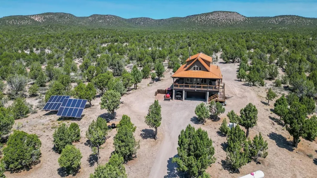 WELCOME HOME TO SOUTHERN UTAH! If you're dreaming of your own private slice of heaven, this extraordinary 40-acre furnished estate delivers. Nestled against both BLM and Forest Service land, it offers unrivaled off grid seclusion, panoramic mountain views, and a true sense of freedom-it's as if you own all of the mountains. Crafted with care and quality, the custom-built home features high-end finishes throughout and was designed to take full advantage of its breathtaking surroundings. Step out onto the expansive wraparound deck to soak in the scenery, or explore the impressive 3-car tandem garage with ADDITIONAL ATV pull-in storage beneath. Equestrian lovers and outdoor enthusiasts will be thrilled by the well maintained horse pasture(s), stalls, and round pen and direct access to endless trails for riding, hiking, and biking. From your backyard, you can hunt for mountain lions, deer, elk, and more-this is a true sportsman's paradise. Where sustainability meets luxury, this SOUTH FACING property boasts a fully owned, state-of-the-art solar power system with automatic controls to a whole home generator for peace of mind, a whole-home water filtering system, private spring-fed well for exceptionally pure water. Located just 8 miles from town and 5 miles from Enterprise Reservoir-ideal for kayaking, boating, and fishing-and only an hour from St. George or Cedar City. Zion National Park is a scenic 2-hour drive away, making this the perfect balance of seclusion and accessibility. Whether you're entertaining guests, building a homestead, or simply escaping the noise of city life, this one-of-a-kind mountain retreat offers the lifestyle you've been searching for. Buyer and Buyer's Agent to verify all information, including square footage and acreage, to their satisfaction.