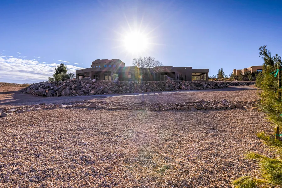Spacious, contemporary completely remodeled Southwestern overlooking Sky Ranch private air strip on large lot. Enjoy a carefree lifestyle in this 4 bedroom, 3.5 bath upgraded home including, ensuite guest room, gourmet kitchen, reclaimed logs posts and beams, tile and hardwood floors, 40+ new trees around perimeter w/auto drip system, Vivint Total Home Security System with graded circular driveway. View of Hurricane Cliffs, Pine Mountain and Copper Rock golf course from the large covered porch. Plenty of room for a backyard pool! Located just off the new Southern Corridor, this home is close to Sand Hollow reservoir and sand dunes and only 25 minutes from Zion National Park. Included in the sale is a 50 X 50 hanger lot.Tax ID #s: GMSR-5C-HU288-HV, GMSR-5C-HU289-HV, GMSR-5C-HU290-HV, GMSR-5C-HU291-HV, GMSR-5C-HU292-HV