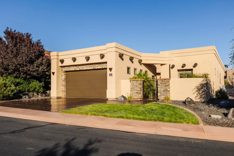 This home is perfect as a second home or a primary residence. Complete with a large separate casita with wet bar, high ceilings, plantation shutters, skylight, wood stain doors, newer HVAC, water heater and softener, and low maintenance yard. Entertain outside on your private patio with outdoor kitchen, and two fire features. Small gated community with pool and spa. Owners only, no rentals.