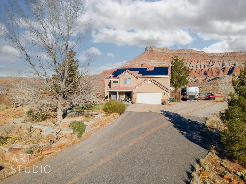 Nothing like this on the market now! Views all around this beautifully updated hilltop home only 15 minutes from Zion Park. Walking distance from Virgin river, mountain biking and ATV trails. 1.32 Acre lot with room for horses, RVs (has full hookups), or future additions! Top quality inside and out, granite and quartz counters, with hand chiseled stone and stucco exterior. Owned 12KW Solar system!