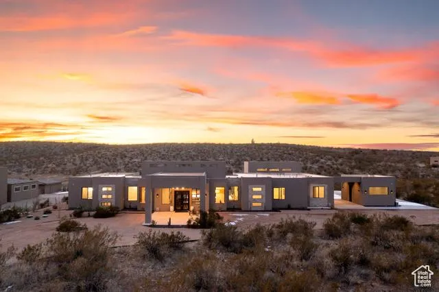 Imagine waking up every morning to the stunning beauty of the Hurricane Valley Cliffs, right outside your bedroom window. This exceptional home, meticulously crafted by Solid Group Utah, one of the state's premier luxury builders, offers a truly captivating living experience in this brand new, contemporary modern estate on 3.21 acres. As you explore this remarkable residence, you'll be awestruck by the clean lines, exquisite woodwork, natural stone, custom cabinetry, and an array of stunning tilework. The Chief Creative Designer at Solids has thoughtfully placed each element to perfectly frame the breathtaking surroundings, creating an ambiance that is truly unmatched. Step towards luxury with the lavish backyard oasis including an expansive heated infinity pool and spa. This stunning 5 Bedroom, 5 Bath, 2 kitchen estate is equipped with a state-of-the-art surround sound system throughout. Enjoy a large game room, outdoor kitchen, and custom outdoor fire pit. Stay active with a pickleball court and admire the impressive front entry porte-cochre. Park your vehicles with ease in the 5 car garage, including two RV garages. The Master Bedroom offers ultimate convenience with its own washer/dryer inside the spacious walk-in closet. Unwind in the extravagant walk-in shower or soak in the indulgent tub. This property is a perfect blend of luxury and allure. With Smart TVs in every room, including the living room, back patio, game room, and detached garage, this is a technological paradise. Close proximity to Copper Rocks championship golf course and Sand Hollow Reservoir allows for endless outdoor activities just minutes away. Located within a stone's throw of BLM land, you can explore the great outdoors to your heart's content. Enveloped by nature and just a short drive from Zion National Park, this location is a dream for adventurers. And when it's time for the everyday conveniences, shopping and dining are within a 10-minute radius. Don't miss this rare opportunity to own a sprawling estate in such a prime location. Schedule a private tour today and experience the allure for yourself!