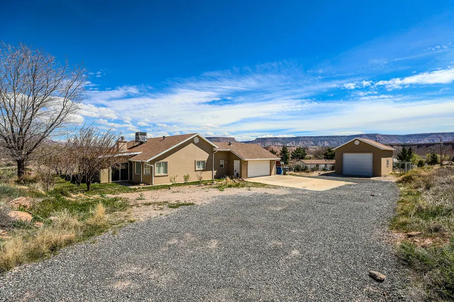 This desserts hideaway is too beautiful to miss. On the edge of Zions National Park, this charming 3bed/2bath home is ready to move in. 1.3 acres with 2 barns, nut trees, fruit trees, Horse property rights, and water shares. This home is also fitted with a generator and natural gas. AND Heated Garage. The private road gives it added charm. Fully fenced for privacy.