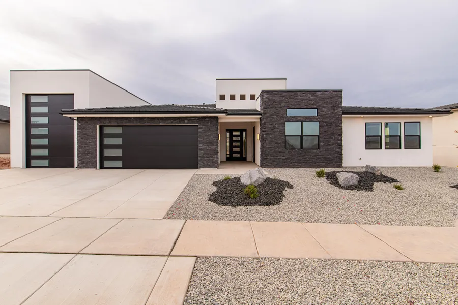 Welcome to this exceptional property in the brand-new subdivision, Frontier of Washington Fields, where high-quality construction meets modern luxury. This stunning home boasts over $100K in upgrades, reflecting premium craftsmanship and contemporary design. Built with 2x6 construction. Enjoy the comfort of a 2 zoned HVAC system, 9ft ceilings, and 8ft doors throughout, complemented by high-end LVP and tile work. The kitchen is a dream, with a double oven and a butler's pantry, making it perfect for entertaining and everyday living. The master suite offers a garden tub, walk-in shower and closet. Attached casita provides additional space for guests or a private office. The home also features a HUGE oversized RV garage with a 14' door and a 49' deep. 2-car garage that's 18' wide with an 8' tall door, equipped with two 220V plugs ideal for electric vehicles and RVs. Additionally, there's ample room for an RV pad on the side. Block fencing and fully front and backyard landscaping will be done as well. As a bonus, if the builder's preferred lender is used, there's an opportunity for a seller contribution.