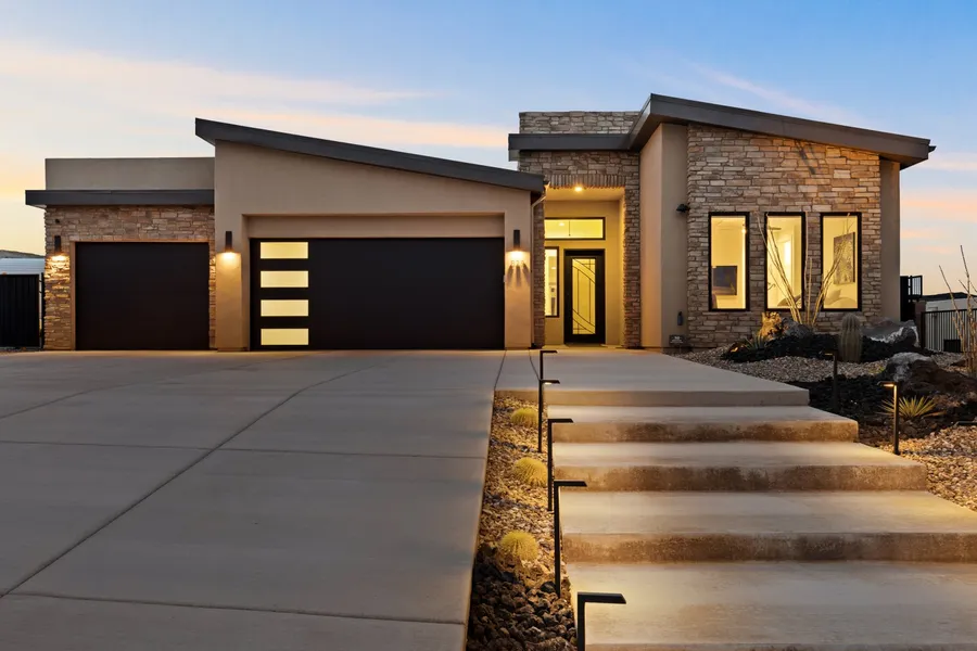 Perched atop the hill in complete privacy with breathtaking views, this one-of-a-kind, like-new home at The Ridge at Zion Vista offers the ultimate in luxury living. Step inside to find luxury vinyl flooring, high-end granite countertops, and a built-in audio surround sound system in the living room, perfect for entertainment. The covered patio features mechanical sun shades on remote, allowing you to enjoy outdoor living in comfort. Outside, indulge in your private saltwater pool and spa, complete with a Sandstone fire pit and cabana—the perfect setting for relaxation and enjoyment. The garage is designed for convenience with an epoxy floor finish and built-in storage, while the oversized lot provides ample RV parking with full power, water, and sewer hookups.