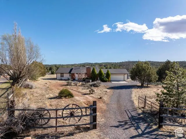 This home is loaded with character and charm! Nestled on a sprawling, fully fenced 1.31-acre parcel with a private entry gate, this single-family home in Dammeron Valley features 4 bedrooms, 2 bathrooms, and a 2-car attached garage, there's also ample room for parking trailers, RVs, and all your toys. Inside, the home showcases LVP flooring and a kitchen equipped with a convenient hatchway, plus stainless-steel fridge and dishwasher. The cozy living room is highlighted by a charming wood-burning stove and a delightful alcove. The hallway is lined with plenty of storage closets to keep everything organized and within reach. Step outside to enjoy the spacious covered patio, which presents the stunning view of Pine Valley Mountain, and a detached storage shed. Horse privileges here with the ability of having at least 2 horses on the property. This home offers a fantastic opportunity to enjoy the slow pace life.