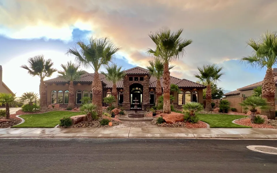 Rare opportunity to own your own slice of heaven in the exclusive Redstone Springs Community. This large home sits on over 3/4 acre and is a lavishly landscaped oasis. Unique to this property is shared access to a pressurized secondary water system for your irrigation needs as well as culinary water. This home includes an attached spacious 3-car garage and detached 3000 sf RV garage with 14-ft overhead doors, rear wash bay and 1/2 bathroom offering a total of 4250 sf of garage space.