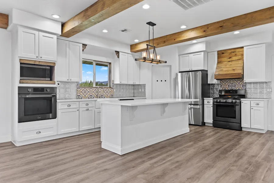 Great deal alert! This 2017 home sits on 5 acres of horse property, and offers rare flexibility: you can add a second home, barn, shop, garage, or all of the above. Horses, livestock, and animals of all kinds are allowed. The wraparound porch captures incredible mountain & valley views in the quiet community of New Harmony between St. George and Cedar City with fast I-15 access. For schools, buses take the kids to Cedar City, or you can enroll them in St. George schools too. Quartz countertops, double ovens, gas range, farmhouse sink, walk-in pantry, wood-burning fireplace, dual-zone HVAC, and a loft with views, oversized driveway, sheep tight fenced orchard, pasture, and chicken coop. There are endless possibilities on this wonderful home with fresh air and lots of elbow room.