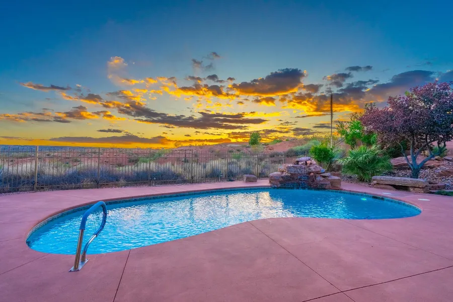 Welcome to 2187 N Territory Canyon Dr, located in the highly sought-after Coral Canyon community of Washington, UT. This smart and spacious home is loaded with thoughtful upgrades, energy-efficient systems, and even includes a private-income-producing casita! Inside, enjoy the comfort of dual-zone A/C (with one unit replaced in 2024), a gas fireplace, and a home pre-plumbed for both a water softener and central vacuum. App-controlled features include Everlights for year-round exterior lighting, a Ring doorbell, and a Beehive smart irrigation system. A new washer (2024) and dryer can be included. Secluded Backyard oasis w/heated pool overlooking open space & views of Pine Valley Mountain- accessed from kitchen, living room, Master bedroom or 3rd bay of garage