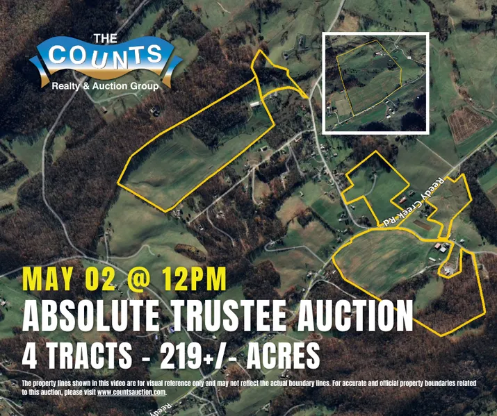 A rare opportunity to purchase 219.44 total acres in 4 tracts, just 3 miles from the Bristol city limits. This is an Absolute Auction all tracts will sell to the highest bidder, regardless of price!