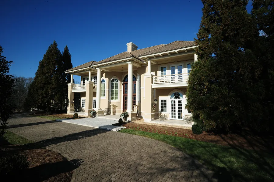 Incredible property for the connoisseur of unique homes located in The Virginian Golf Club on 1.3 acres. The finished living area is over 6,600 square feet in three buildings. Step into the main house through double front doors into the great room with a 22-foot ceiling and a wall of windows overlooking the back terrace and the 9th fairway. Two curved iron staircases access the guest suites on either side of the great room. The master suite is on the main level with a bath and looks out to the golf course. The library has a coffered ceiling made from the same maple wood that covers the walls, bookcases and floor. Large eat-in kitchen open to the den, formal dining room with wet bar, and laundry room complete the level. A guest house connected with a breezeway features three bedrooms, each with a bath. A large recreation room above the three-plus-car garage is the third building. This room has a 360-degree view of the golf course and surrounding area. Truly a one-of-a-kind property.