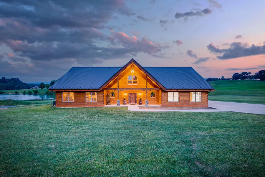 Fine homes and estates have nothing on this custom built log home with lake frontage on South Holston. This meticulously crafted home will impress the U.S. Army Corps of Engineers with details, details, details!! From the wrought iron custom made panels (catch a glimpse in the photos) to the high tech slip joints, the attention to detail and pride of ownership abounds in this unique property! The open floor plan, kitchen with stainless appliance (including a griddle and double wall ovens), two main level ensuite bedrooms, and main level laundry, and two car attached garage make it possible for those preferring no steps to be completely at home in this luxurious cabin. From the aerial views, you can see the cascading mountains dancing in the background of this spectacular home. Two story great room with tons of windows illuminates the home with natural light! The catwalk is exceptional and trimmed with wrought iron animal silhouettes. The oversized staircase is ideal for the charm of this large but quaint home. The professional photographer eloquently showcased the personality of this home. Don't miss her strutting in each photo. The driveway is encased in concrete. The excess affords ample room for multiple parking, A gently rolling yard provides easy access to the lake plus a garden has already been planted. The 40 X 80 detached garage is ideal for a workshop or parking a boat and has double sheetrock insulation. The office space alone is a great addition to this space. The upper level has the potential to be an income generator if completed. This home is the total package with real logs, mountain views, and SoHo lake frontage! There are a few items left on the seller's list to complete. For a showing at your convenience, contact a Realtor(r) today!