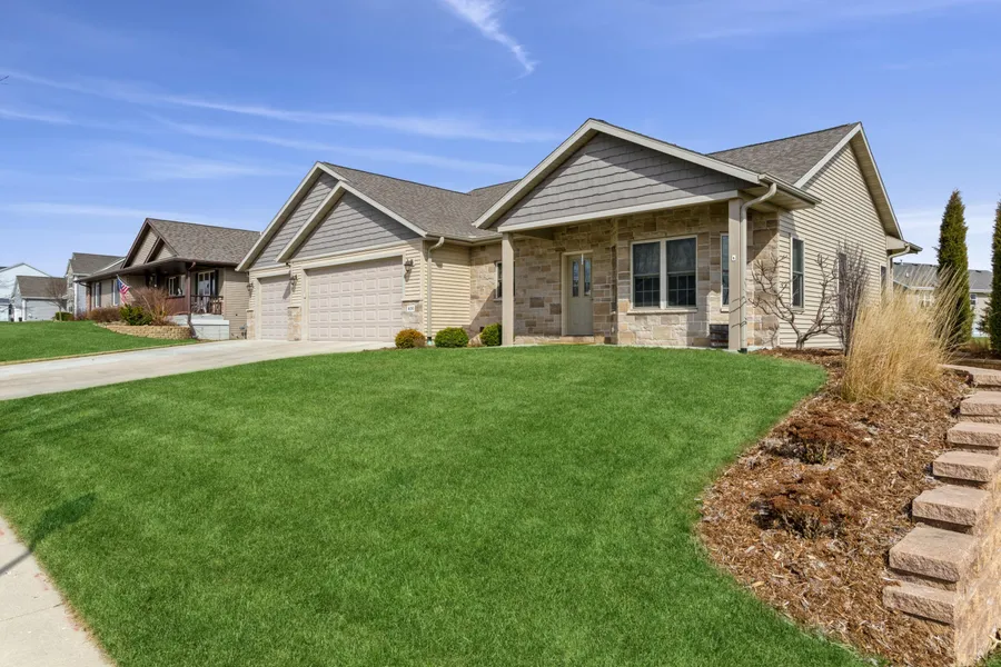 This gorgeous custom built ranch has everything on your dream home check list! Open concept living room, dining area, kitchen w/cathedral ceilings, ash hardwood floors. Master bedroom suite w/walk in closet & additional closet. Master bath w/beautiful tile walk in shower, double sinks. Two additional bedrooms, full bath, spacious laundry room and 9 ft. ceilings complete the first floor. As you enter the finished lower level, you will be planning your next get together w/family & friends. This stunning rec room has everything you could want! Family room area w/egress windows, beautiful custom masonry bar that seats 10! Lower level also has full bath, 9 Ft. ceilings, plenty of storage. 6 panel 36'' doors throughout. Huge 3.5 car garage w/access to basement. This beautiful home has it all