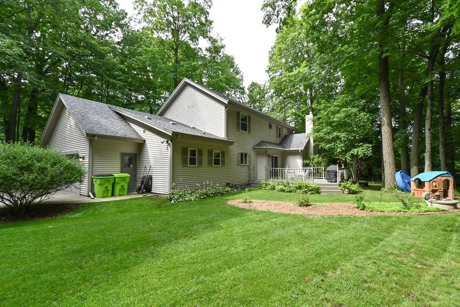 Town of Erin, beautifully updated spacious 3 bedroom 2.5 bath country home. Enjoy private wooded seclusion. Beautiful updated kitchen features granite counter tops, tile backsplash, beautiful cabinetry, spacious pantry, breakfast bar with large eat-in dinette overlooking private deck. Main level features a dining room which could become a great private office, there are two living rooms on the main with a natural fireplace. Main level laundry is tucked away next to an updated 1/2 bath. Upper level has 3 large bedrooms, plus an open loft/study area including a large master bedroom suite, with whirlpool tub, standalone shower and large walk-in closet. Lower level is partially finished with great potential, rec room, work-shop and storage. Near golf, parks. Private 3 acre park in subdivision